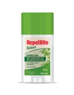 RepelBite Natural Barra 50 ml es un repelente de insectos eficaz y suave, ideal para proteger la piel de picaduras sin ingredientes químicos agresivos. Con su formato práctico en barra, es perfecto para llevar a todas partes. Apto para toda la familia.
